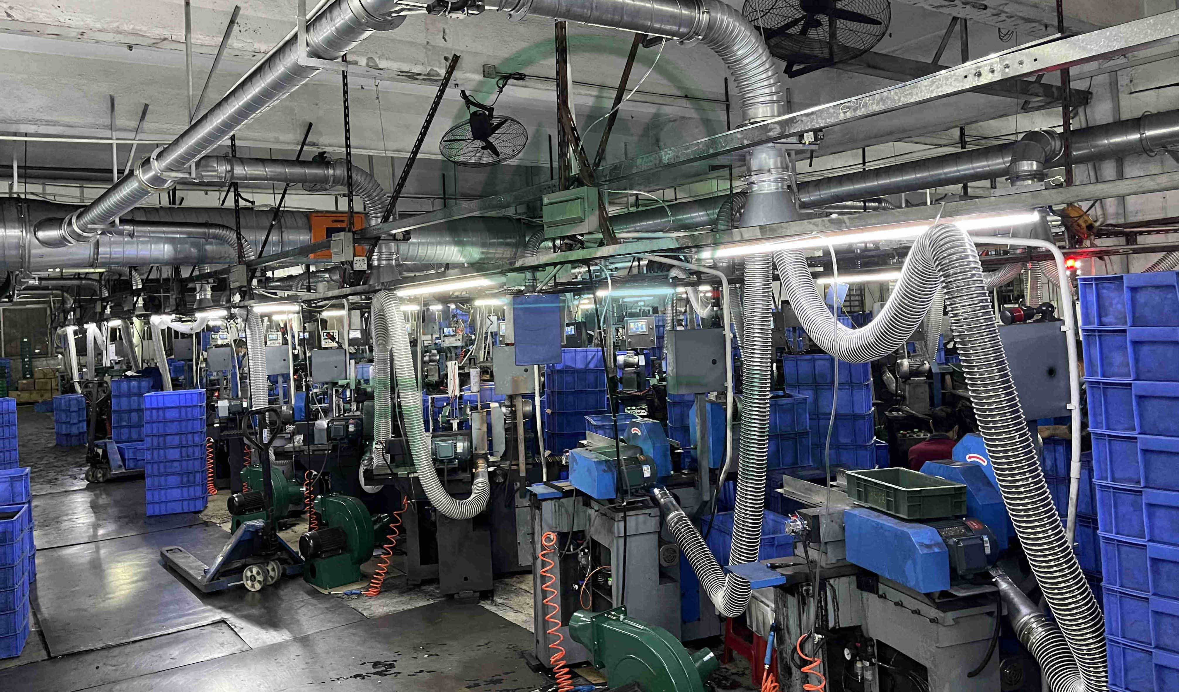對60臺磨床進(jìn)行粉塵處理。萬川配套一套64000風(fēng)量脈沖布袋除塵器+除塵風(fēng)機(jī)+火星探測+隔爆+自動化電控柜系統(tǒng)。