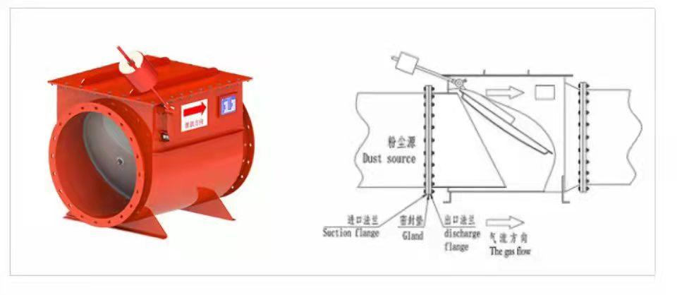 粉塵隔爆閥:與泄爆裝置配合使用,當(dāng)除塵系統(tǒng)發(fā)生粉塵爆炸時(shí),有效阻斷爆炸沖擊波返回車間,保證車間人員安全。